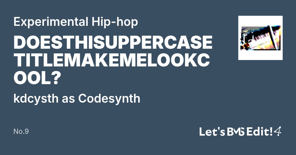 同梱 | DOESTHISUPPERCASETITLEMAKEMELOOKCOOL? | _superbeat_h.bms | 8 | |||||