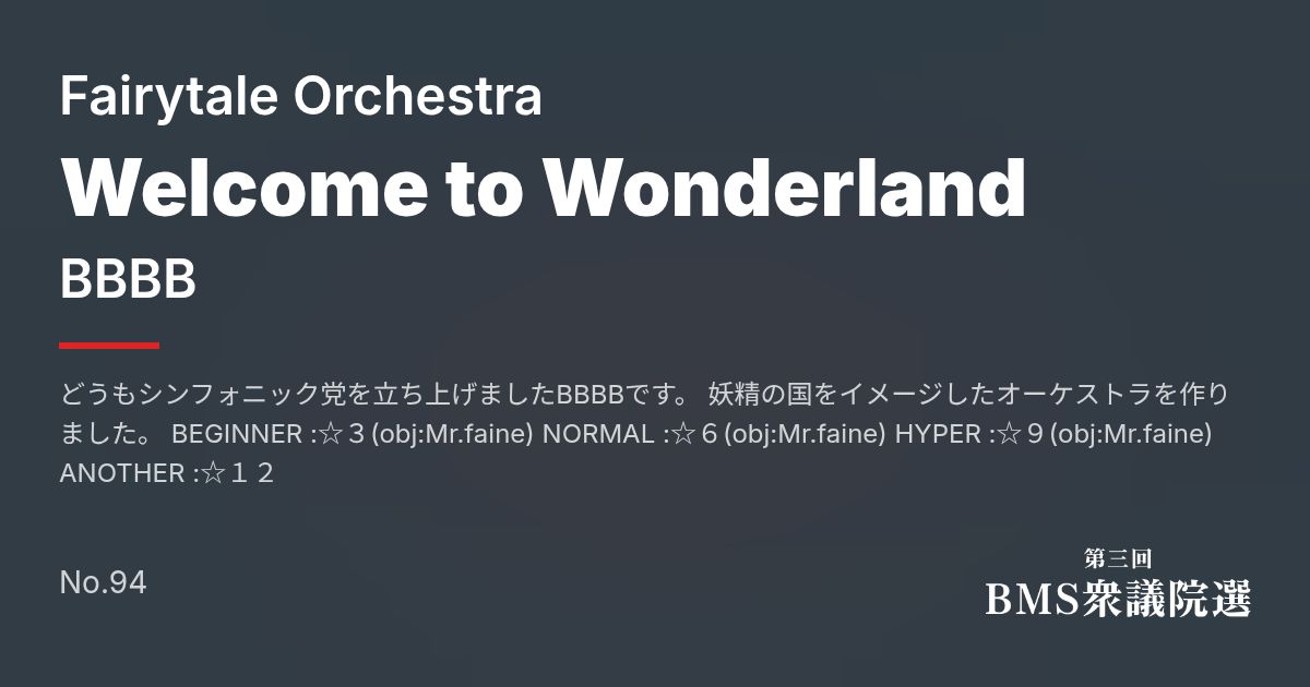 同梱 | Welcome to Wonderland [NORMAL] | _Normal.bms | 6 | |||||