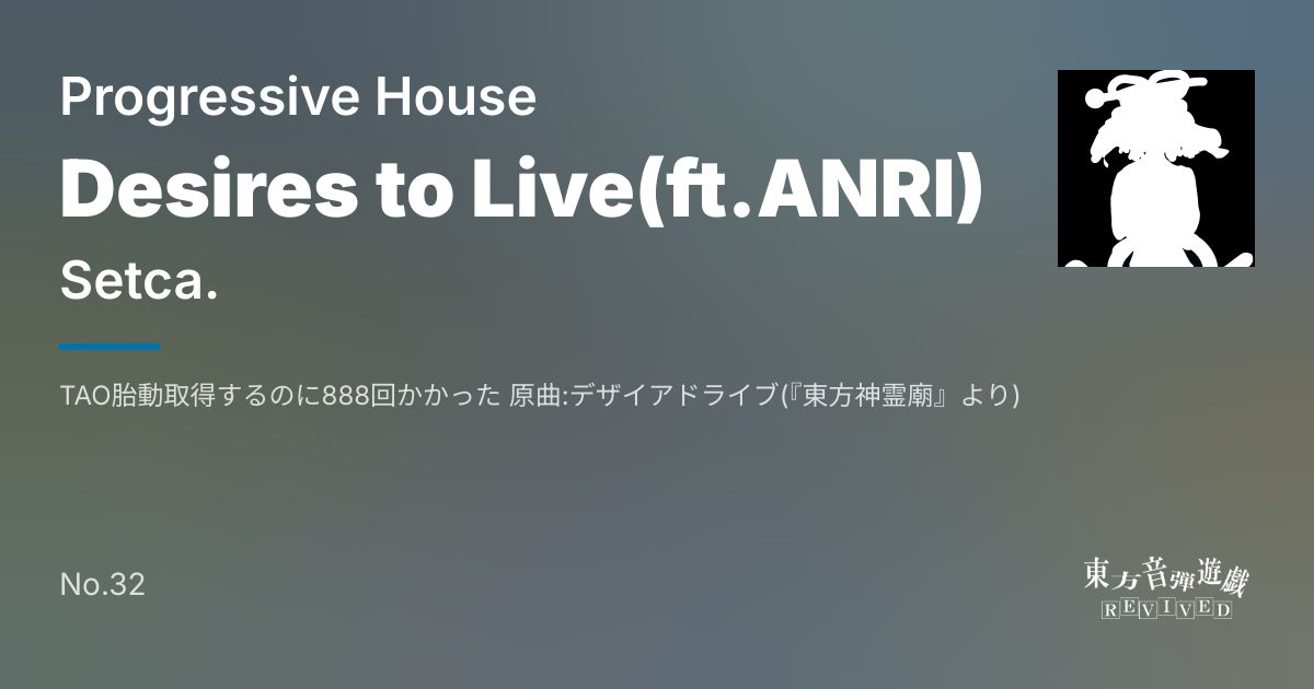 Artist: Setca. Genre: Progressive House / TAO胎動取得するのに888回かかった 原曲:デザイアドライブ(『東方神霊廟』より)