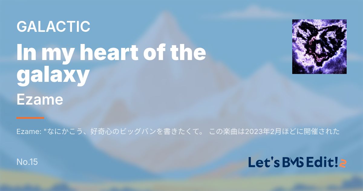 Artist: Ezame Genre: GALACTIC / Ezame: "なにかこう、好奇心のビッグバンを書きたくて。 この楽曲は2023年2月ほどに開催されたMuse dash 楽曲募集イベントに投稿したものになります。 BPM265のBreakcore的ななにかを作りたかった。 とても難しかったけれど。 しかしながらいい経験になったと思います。 そんなモンが譜面になりました。ぜひご賞...