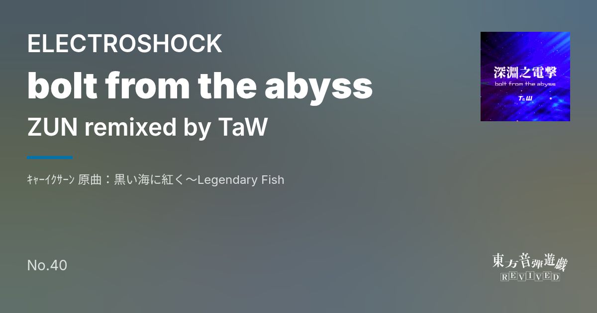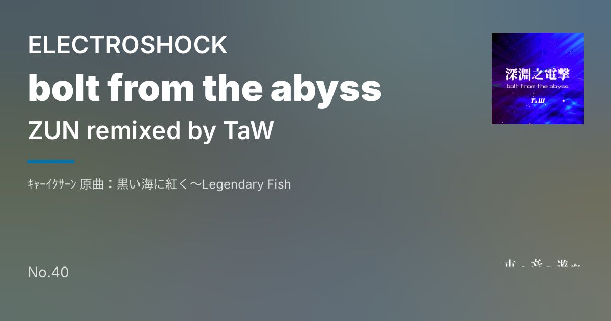 Artist: ZUN remixed by TaW Genre: ELECTROSHOCK / キャーイクサーン 原曲:黒い海に紅く~Legendary Fish