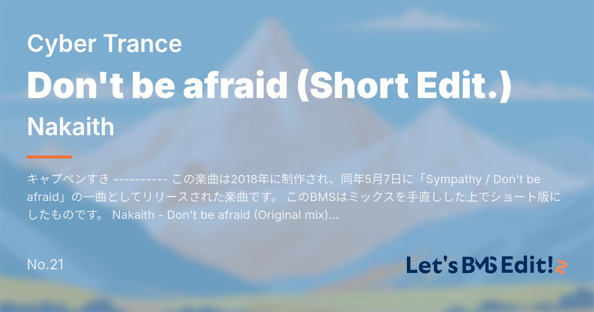 同梱 | Don't be afraid (Short Edit.) | _nakaith_dont_be_afraid_short_edit_normal.bms | 10 |