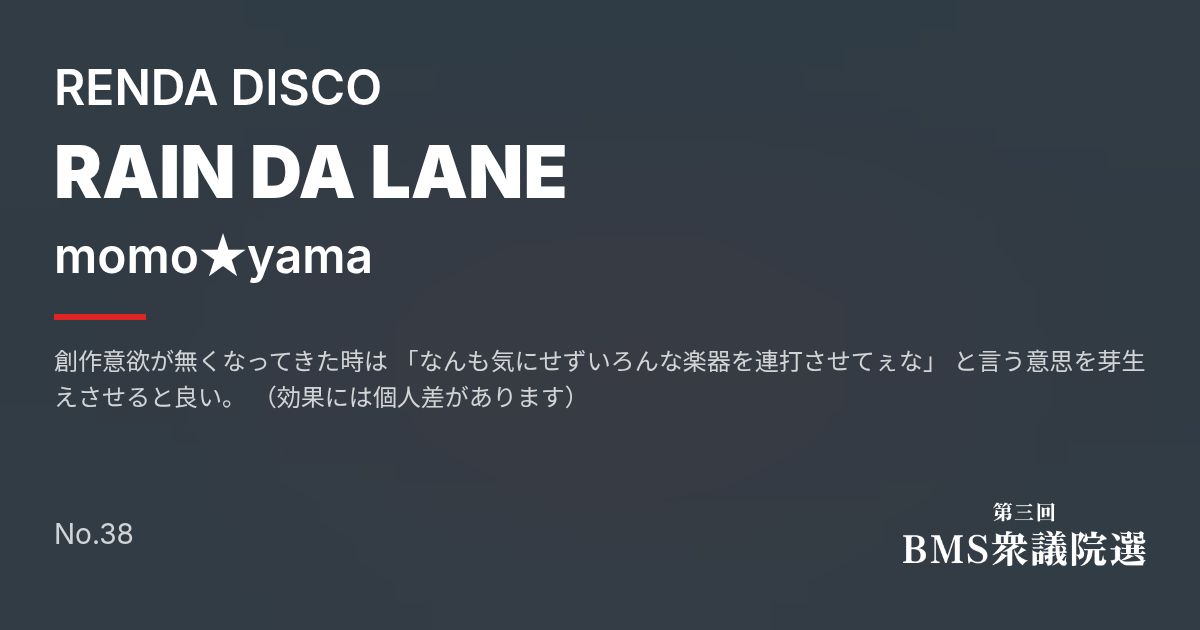 同梱 | RAIN DA LANE | 03_raindalane_h.bms | 10 | |||||