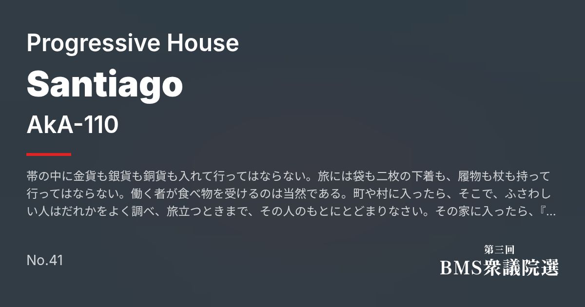 Artist: AkA-110 Genre: Progressive House / 帯の中に金貨も銀貨も銅貨も入れて行ってはならない。旅には袋も二枚の下着も、履物も杖も持って行ってはならない。働く者が食べ物を受けるのは当然である。町や村に入ったら、そこで、ふさわしい人はだれかをよく調べ、旅立つときまで、その人のもとにとどまりなさい。その家に入ったら、『平和があるように』と挨拶しなさい。家の人々が...