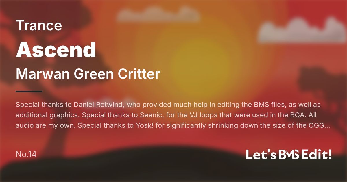 Artist: Marwan Green Critter Genre: Trance / Special thanks to Daniel Rotwind, who provided much help in editing the BMS files, as well as additional graphics. Special thanks to Seenic, for the VJ lo...