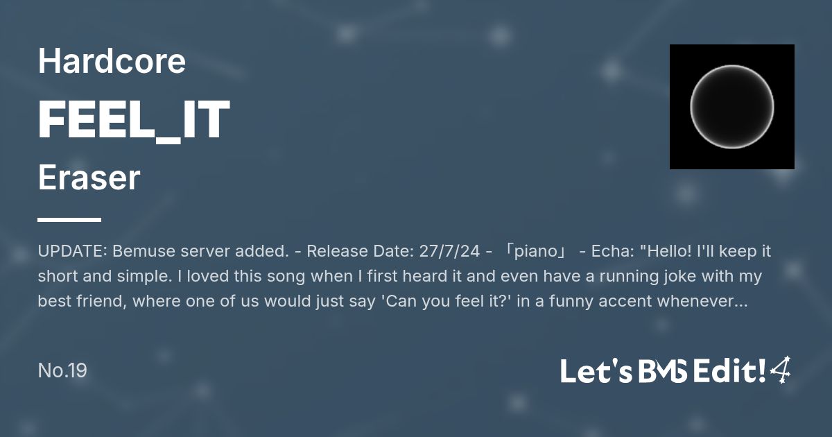 Artist: Eraser Genre: Hardcore / UPDATE: Bemuse server added. - Release Date: 27/7/24 - 「piano」 - Echa: "Hello! I'll keep it short and simple. I loved this song when I first heard it and even ha...