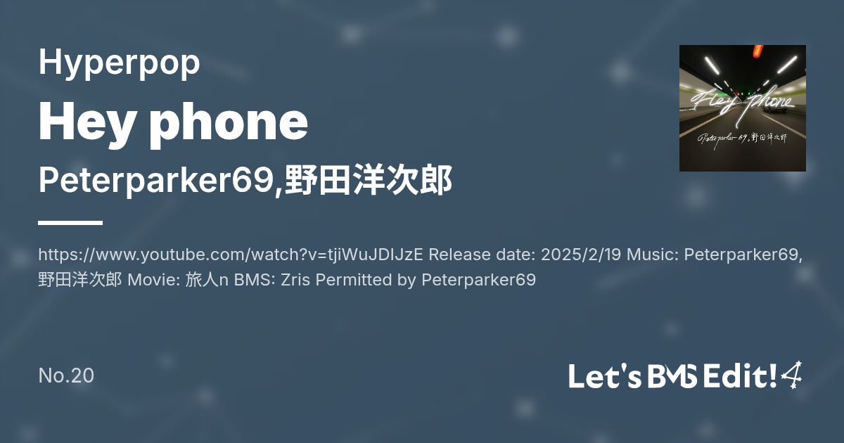 Artist: Peterparker69,野田洋次郎 Genre: Hyperpop / https://www.youtube.com/watch?v=tjiWuJDIJzE Release date: 2025/2/19 Music: Peterparker69,野田洋次郎 Movie: 旅人n BMS: Zris Permitted by Peterparker69
