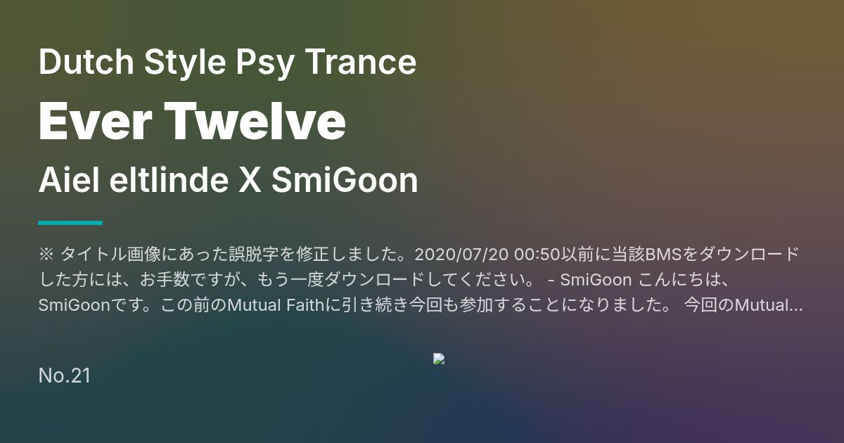 Artist: Aiel eltlinde X SmiGoon Genre: Dutch Style Psy Trance / ※ タイトル画像にあった誤脱字を修正しました。2020/07/20 00:50以前に当該BMSをダウンロードした方には、お手数ですが、もう一度ダウンロードしてください。 - SmiGoon こんにちは、SmiGoonです。この前のMutual Faithに引き続き今回...