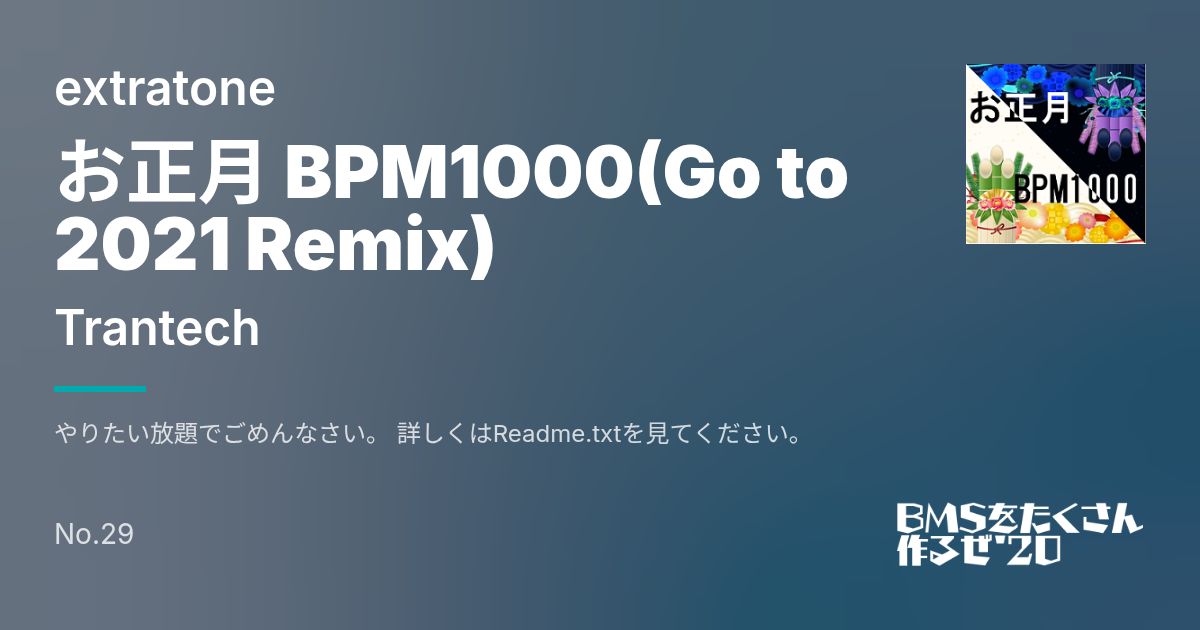 同梱 | お正月 BPM1000(Go to 2021 Remix)[Another] | お正月 BPM1000(Go to 2021 Remix)_7A.bms | 12 |
