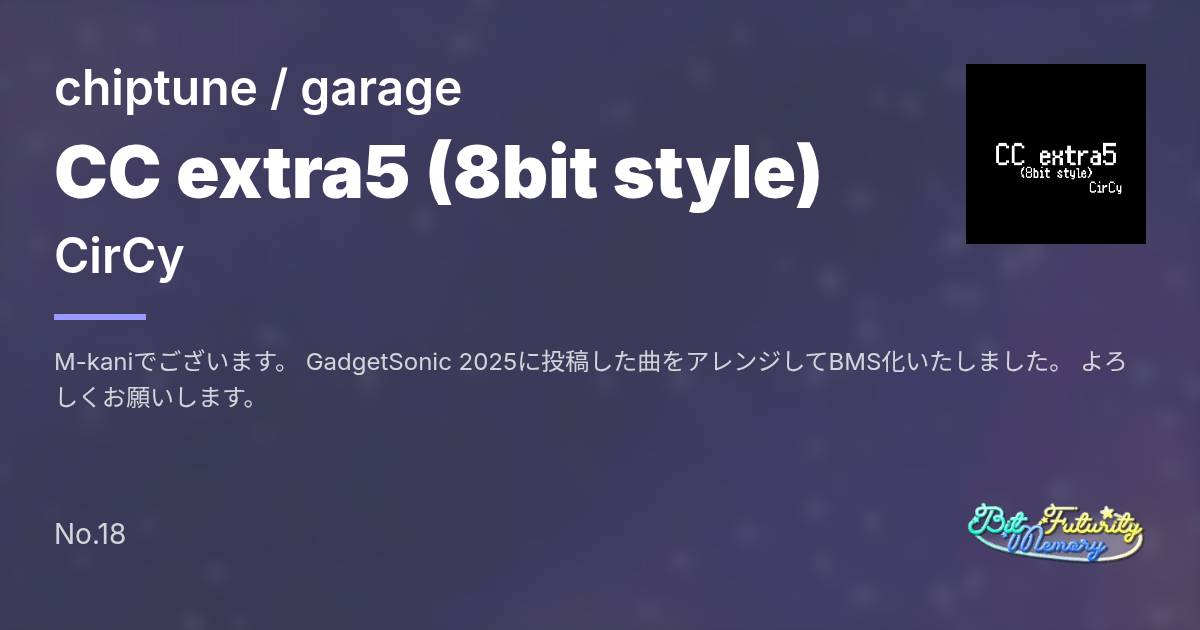 同梱 | CC extra5 (8bit style) (5keys) | CC_extra5_5.bms | 7 | |||||