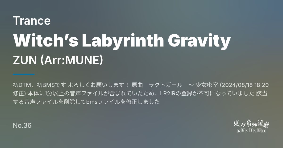 同梱 | Witch’s Labyrinth Gravity | Witch’s Labyrinth Gravity(another).bms | 12 | |||||