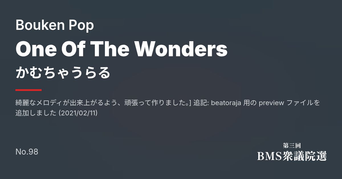同梱 | One Of The Wonders [NORMAL] | normal.bms | 6 | |||||