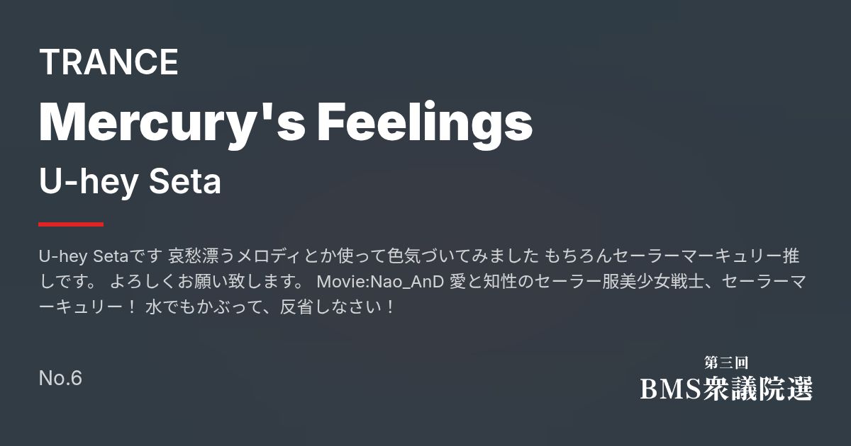Artist: U-hey Seta Genre: TRANCE / U-hey Setaです 哀愁漂うメロディとか使って色気づいてみました もちろんセーラーマーキュリー推しです。 よろしくお願い致します。 Movie:Nao_AnD 愛と知性のセーラー服美少女戦士、セーラーマーキュリー! 水でもかぶって、反省しなさい!