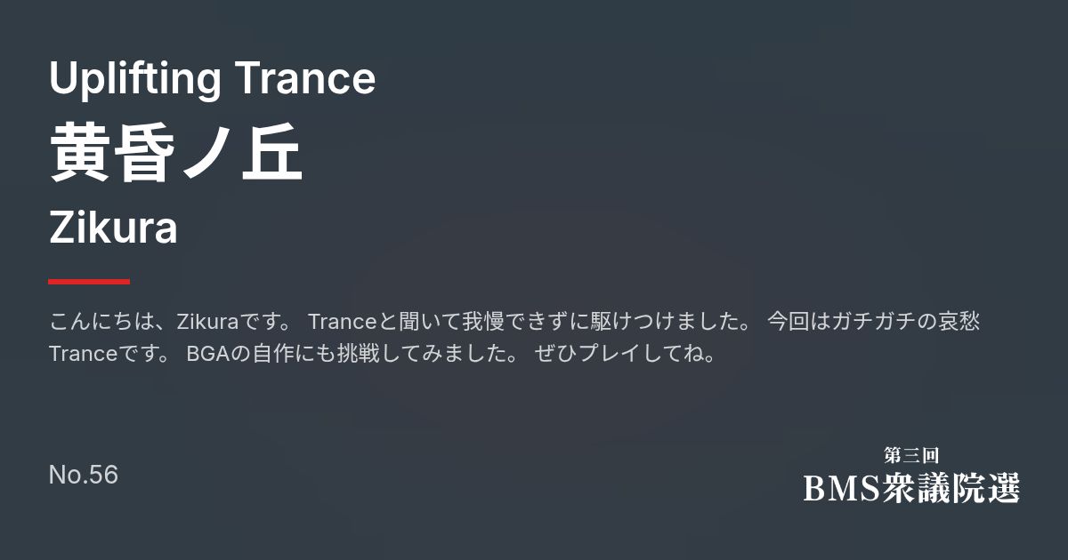 ・第三回BMS衆議院選参加作品 ・「黄昏ノ丘 / Zikura」 ・138bpm https://venue.bmssearch.net/bmsshuin3/56