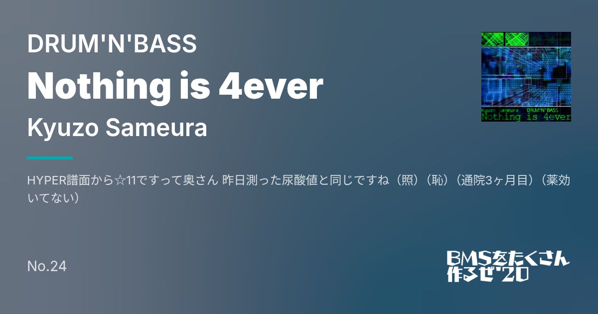 同梱 | Nothing is 4ever [7KEYS HYPER] | 7keys_hyper.bms | 11 | |||||