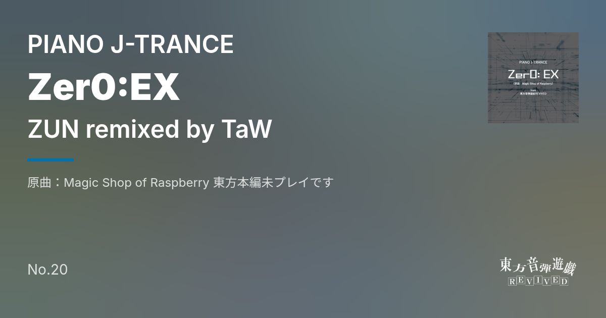 Artist: ZUN remixed by TaW Genre: PIANO J-TRANCE / 原曲:Magic Shop of Raspberry 東方本編未プレイです