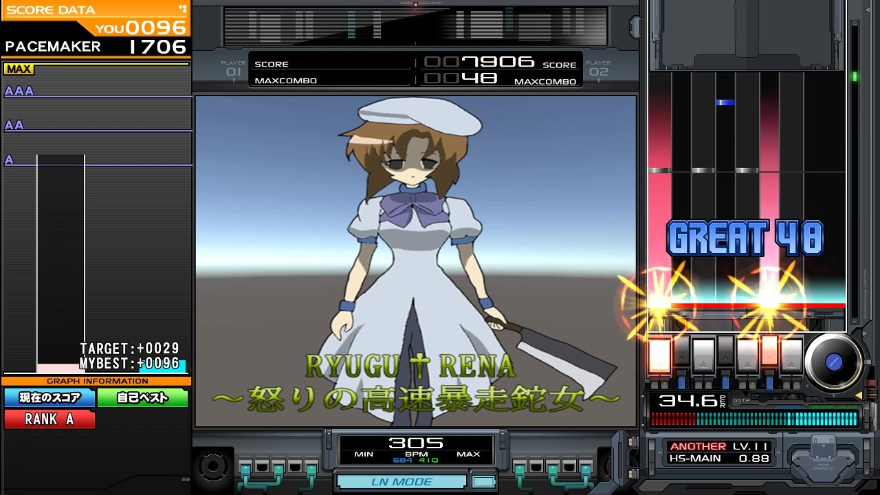 【#BOFXV】RYUGU†RENA ~怒りの高速暴走鉈女~ [ゲーム] 前に音雲に乗せてたひぐらしのなく頃に「you」のアレンジ曲をBOFXV用に再度作り直しBMS化させました...