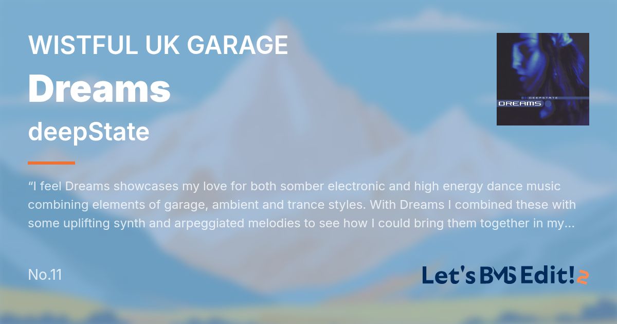 Artist: deepState Genre: WISTFUL UK GARAGE / “I feel Dreams showcases my love for both somber electronic and high energy dance music combining elements of garage, ambient and trance styles. With Dream...