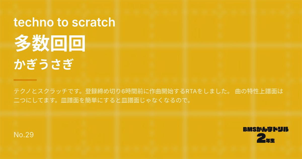 Artist: かぎうさぎ Genre: techno to scratch / テクノとスクラッチです。登録締め切り6時間前に作曲開始するRTAをしました。 曲の特性上譜面は二つにしてます。皿譜面を簡単にすると皿譜面じゃなくなるので。