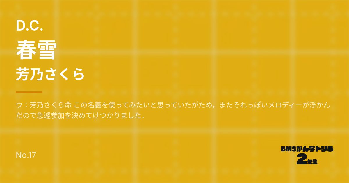 Artist: 芳乃さくら Genre: D.C. / ウ:芳乃さくら命 この名義を使ってみたいと思っていたがため,またそれっぽいメロディーが浮かんだので急遽参加を決めてけつかりました.