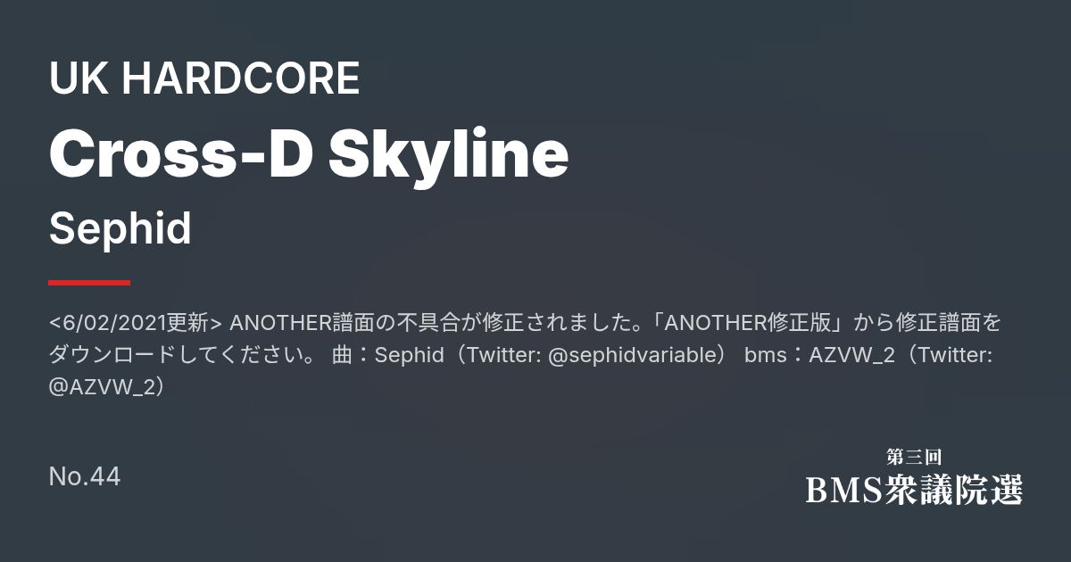 Artist: Sephid Genre: UK HARDCORE / <6/02/2021更新> ANOTHER譜面の不具合が修正されました。「ANOTHER修正版」から修正譜面をダウンロードしてください。 曲:Sephid(Twitter: @sephidvariable) bms:AZVW_2(Twitter: @AZVW_2)