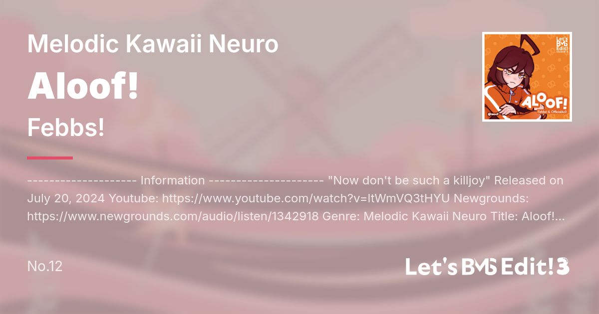 Artist: Febbs! Genre: Melodic Kawaii Neuro / -------------------- Information --------------------- "Now don't be such a killjoy" Released on July 20, 2024 Youtube: https://www.youtube.com/watch?v=l...