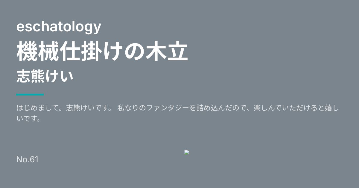 Artist: 志熊けい Genre: eschatology / はじめまして。志熊けいです。 私なりのファンタジーを詰め込んだので、楽しんでいただけると嬉しいです。