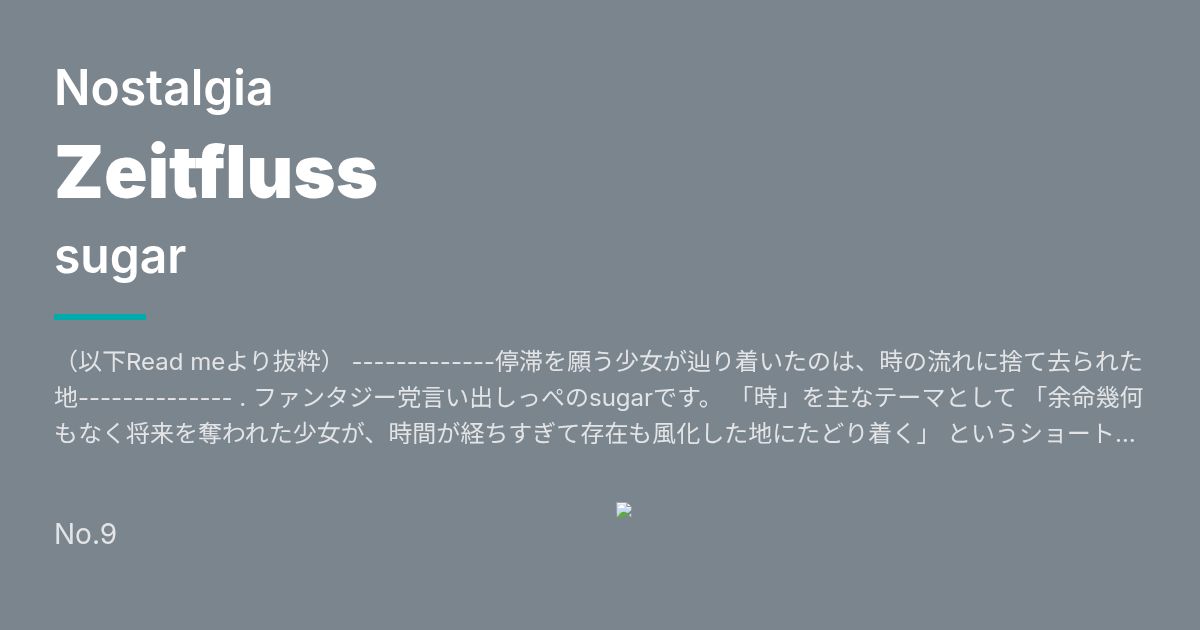 Artist: sugar Genre: Nostalgia / (以下Read meより抜粋) -------------停滞を願う少女が辿り着いたのは、時の流れに捨て去られた地-------------- . ファンタジー党言い出しっぺのsugarです。 「時」を主なテーマとして 「余命幾何もなく将来を奪われた少女が、時間が経ちすぎて存在も風化した地にたどり着く」 というショートストーリーを立...